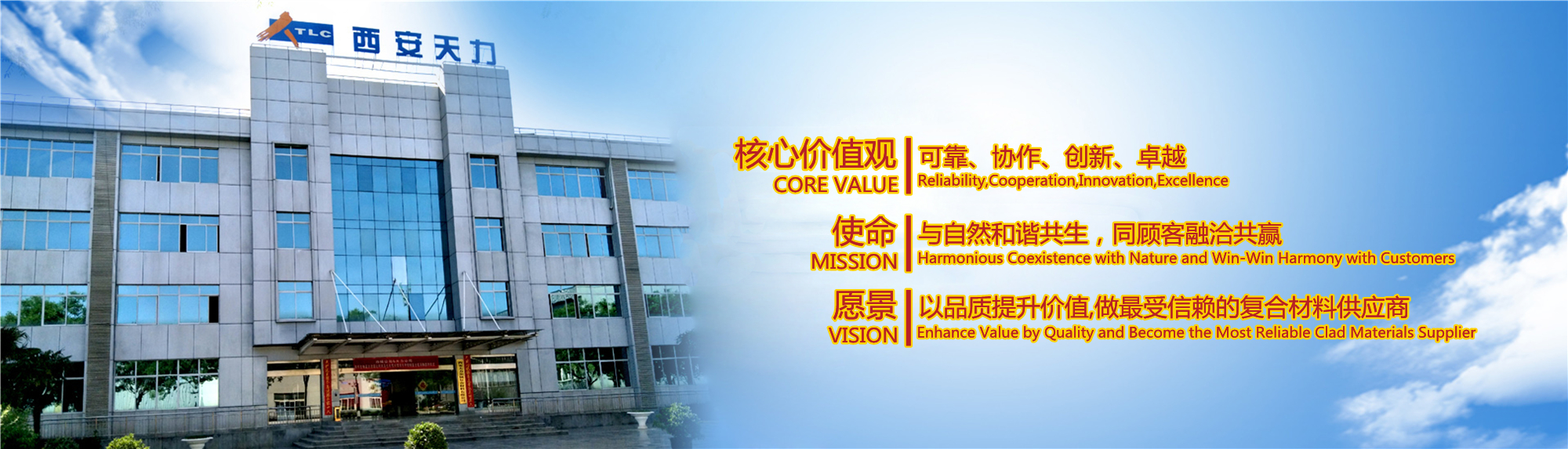 西安天力金屬?gòu)?fù)合材料股份有限公司是西北有色金屬研究院(集團(tuán))產(chǎn)業(yè)化上市公司“西部材料”控股的獨(dú)立法人公司,是專(zhuān)業(yè)從事層狀金屬?gòu)?fù)合材料研究及生產(chǎn)的高新技術(shù)企業(yè),成立于2003年12月25日,位于西安經(jīng)濟(jì)技術(shù)開(kāi)發(fā)區(qū)涇渭工業(yè)園,注冊(cè)資本10895萬(wàn)股,擁有生產(chǎn)廠(chǎng)房23000余平米,各類(lèi)生產(chǎn)設(shè)備200余臺(tái)套及兩塊條件優(yōu)越的爆炸復(fù)合場(chǎng)地,形成年產(chǎn)25000噸層狀復(fù)合材料的生產(chǎn)加工能力……
